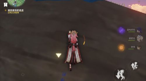 这个追踪遗留的痕迹的任务指引不是很清晰,其实就是需要玩家根据地面上的三角箭头提示来前进。