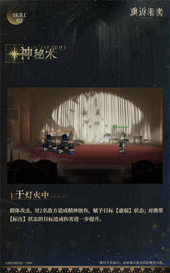 群体攻击,对2名敌方造成精神创伤,赋予目标【虚弱】状态;