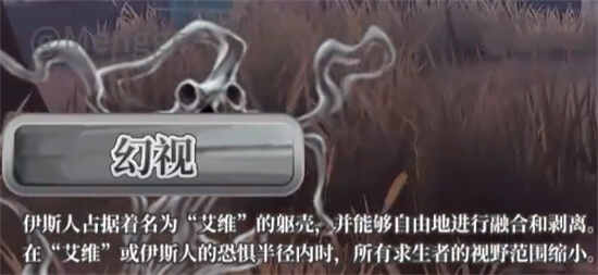 伊斯人占据着名为艾维的躯壳,并能够自由地进行融合和剥离。在艾维或伊斯人的恐惧半径内时,所有求生者的视野范围缩小。