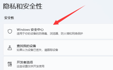 2、然后打开顶部“Windows安全中心”,在右边找到并进入“windows安全中心”。