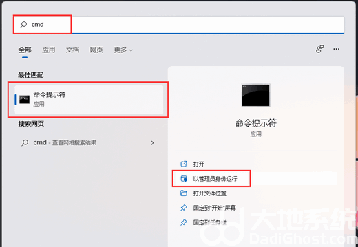 1、首先,按键盘上的【 Win + S 】组合键,或点击任务栏上的【搜索图标】,打开的Windows 搜索窗口,顶部搜索框,输入【cmd】,然后点击【以管理员身份运行】命令提示符应用;