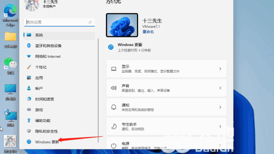 2、然后我们下拉到最下面找到windows更新选项点击进去。