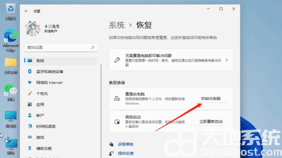 5、最后,点击初始化计算机,恢复win11系统。