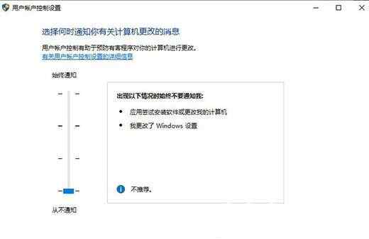3、设置对话框中,设置“为从不通知”,然后确定即可。