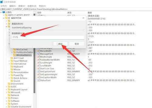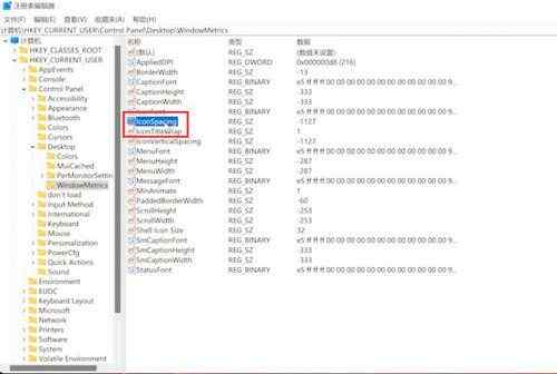 找到lconSpacing和IconVerticalSpacing,把数字修改为-1125,然后重启电脑即可。