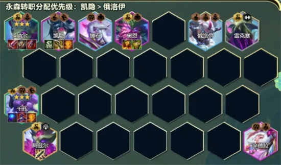 干珏三星后升7人口,无转职建议开4死神或用辛德拉开3灵魂莲华。在7人口D出三星纳尔再升8人口,补出俄洛伊成型。