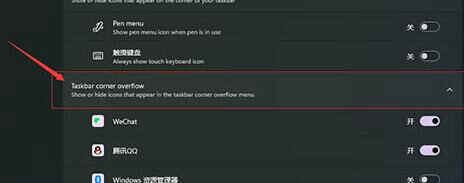 2、在任务栏设置中找到右侧的“taskbar corner overflow”