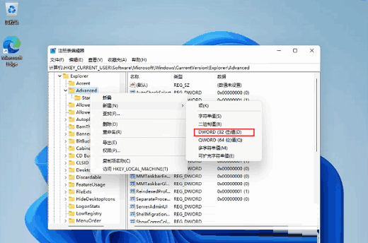 有的win11用户觉得自己的电脑任务栏高度偏大,看起来不是特别美观,那么应该怎么操作才能让它缩小呢?很简单,你可以通过修改注册表的方式来缩小,具体步骤为:打开运行窗口,通过regedit指令打开注册表编辑器,定位到Advanced文件夹,并新建DWORD值(32),命名为TaskbarSi,将它的数值数据改为0就可以了。