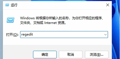 2、之后输入【regedit】,我们选择确定按钮。