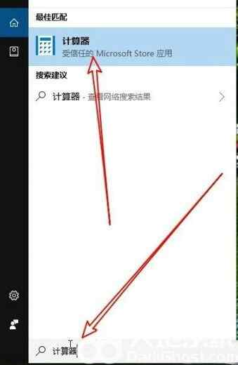 2、在弹出的菜单中输入“计算器”的关键词进行搜索,点击搜索结果中的计算器菜单项,也可以打开Windows10的计算器。