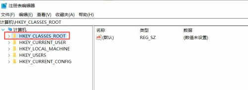 3、接着打开的注册表编辑器中,点击选择“HKEY_CLASSES_ROOT”;