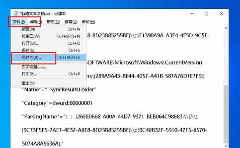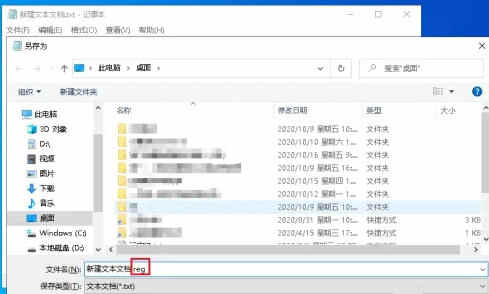 4、点击文件,另存为,弹出对话框,将扩展名修改为reg,点击保存。