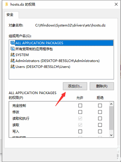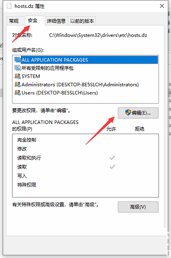 hosts文件具备补充或取代DNS的功能,比如有些网址大家需要修改hosts文件才能进入。但是有的win10用户在修改hosts文件的时候发现没有权限,怎么办呢?你先打开hosts文件的属性窗口,切换到安全选项卡之后点击编辑,然后点添加,将权限改为everyone,并赋予它全部的权限,之后保存设置就能正常修改了。