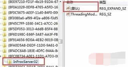 2、依次展开“HKEY_CLAssEs_RooT\CLsID\{8FC0B734-A0E1-11D1-A7D3-0000F87571E3}\InProcserver32”,双击点击默认项,如图所示: