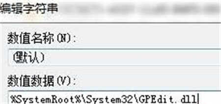 3、将数值数据改为“%systemRoot%system32GPEdit.dll”,点击确定即可,如图所示: