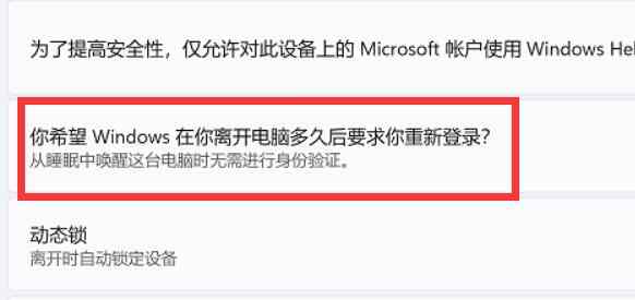 3、再找到下方其他设置的“你希望Windows在你离开电脑多久后要求你重新登录”选项