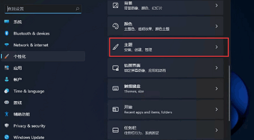 2、接着就会进入到一个设置界面,在设置界面左侧找到主题功能。