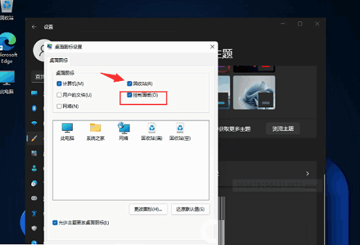 用户在删除文件的时候有时候懒得右键去找删除功能,就会选择直接将文件拖到回收站图标那里达到删除的目的。但是有些win11用户发现自己的回收站图标没了,这种情况要怎么办呢?方法很简单,大家打开系统个性化面板,然后在主题功能中找到桌面图标设置选项,之后勾选回收站就可以了。