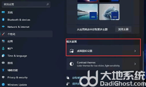 3、点击之后,我们在右侧往下拉,点击“桌面图标设置”选项。