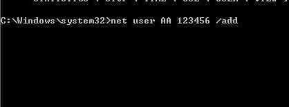3、接着在弹出命令窗口输入“net user AA 123456 /add”回车确定之后我们就可以使用123456作为密码登录了。