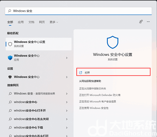 2、Windows 搜索窗口,顶部搜索框输入Windows 安全,然后点击打开系统给出的最佳匹配Windows 安全中心设置;