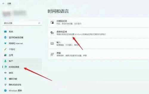 1、在时间和语言中点击【语言和区域】。