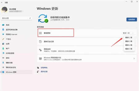 3、进入之后在更新界面点击暂停更新,选择暂停更新时间,就可以关闭更新了。