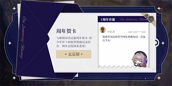 每位开拓者可与帕姆对话10次,每次完成对话后,帕姆将根据对话内容生成1张周年贺卡。开拓者与帕姆的最新一次对话将被留存,您许下的周年愿望将在2周年以特殊的方式寄回给开拓者。