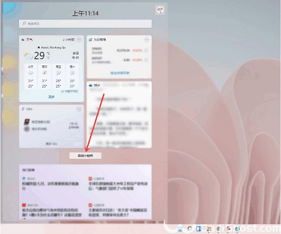 win11这个全新的系统中增加了桌面小组件功能,用户可以通过添加小组件的形式,将天气、新闻等信息显示到桌面上。那么,win11桌面小组件具体怎么添加呢?大家点开任务栏上的小组件图标,就能看到添加小组件的选项,之后点一下目标小组件右侧的加号,你的桌面小组件就添加成功啦。