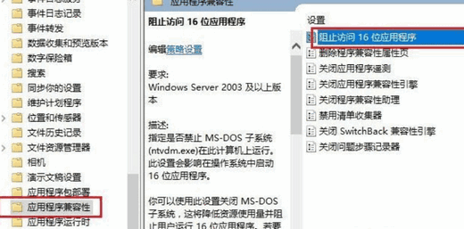 有的win10用户发现自己的系统不支持16位应用程序,这是怎么回事呢?应该怎么办呢?系统不支持16位应用程序通常是因为设置问题,大家可以打开本地组策略编辑器,打开--Windows组件下的应用程序兼容性,然后在右侧界面找到并双击“阻止访问16位应用程序”,将它设置为已启用,最后保存设置就可以了。