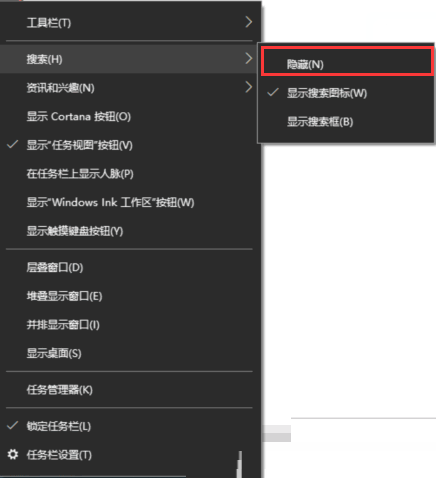 windows10用户可以在电脑左下角看到一个搜索框,通过这个搜索框可以快速查找目标文件或软件,但是有的用户觉得不太需要这个功能,想要关闭它,应该怎么操作呢?你可以在任务栏空白处右键,之后就能在右键菜单中看到搜索,点击一下,就会出现展开项,其中就有个隐藏选项,点击它就可以了。