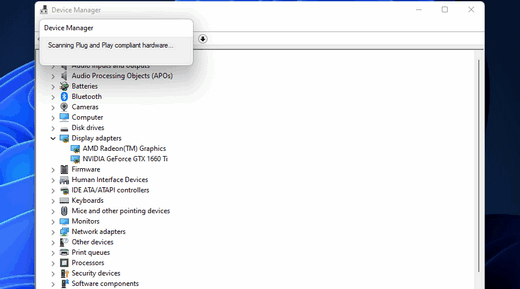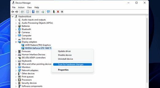 右键单击GPU 驱动程序,然后选择扫描硬件更改。