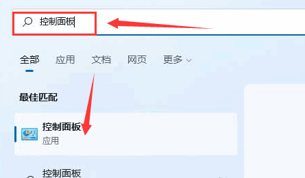 1、按下键盘的win+S键打开搜索图标,找到控制面板选项