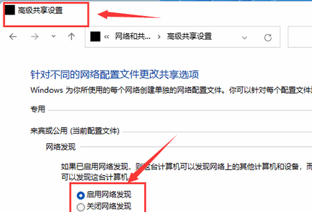 4、最后在高级共享设置面板中,勾选启用网络发现选项即可