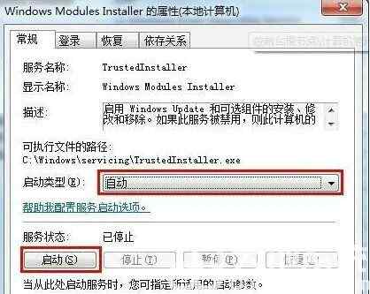 3、将“启动类型”改为“自动”,并“启动”此服务,“应用”后“确定”即可;