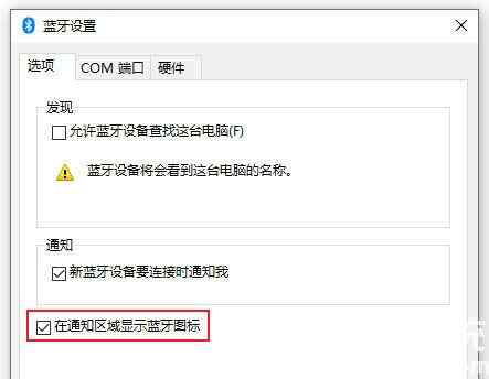 5、选中“在通知区域显示蓝牙图标”保存即可