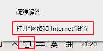 1、右键单击系统托盘中的“网络”图标,选择“网络和Internet设置”