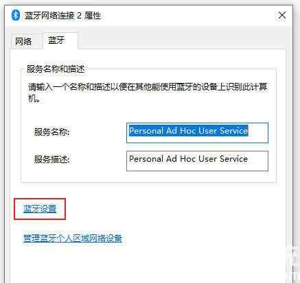 4、在“蓝牙”选项卡下点击“蓝牙设置”