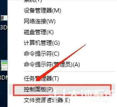 2、右键点击电脑左下角开始,点控制面板
