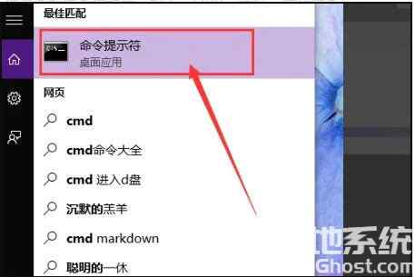 2、当然,还有其他方法可以打开命令程序窗口。 在桌面上的搜索按钮中,输入“ cmd”以开始搜索。 可以在第一个搜索结果中看到桌面应用字样,如下图所示。