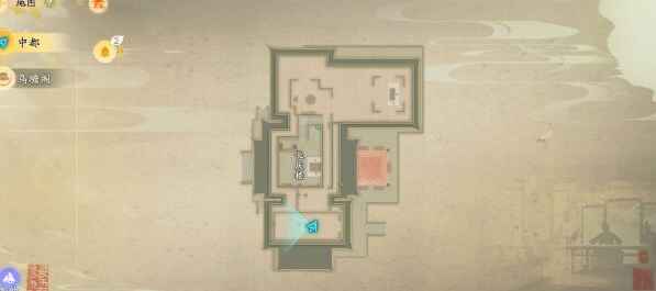 ①前往长庆楼二楼小房间内,点击屋子神秘字条,获得提示【上对南】【中对北】【下对东】