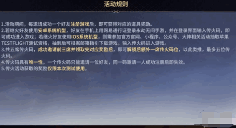 2、目前一共有五席传火码,玩家成功邀请前三席并领取奖励后即可再获得一席传火码位最多可以额外获得五个。