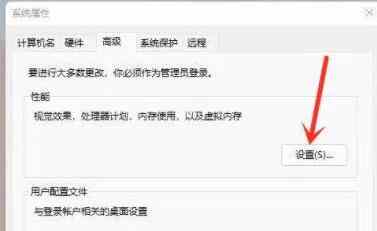 4、在性能选项中选择“设置”