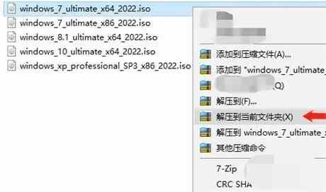 1.首先下载win10系统,然后右击选择“解压到当前文件夹”。