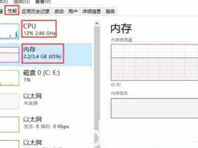 2、开启任务管理器后,转换到“性能”选项卡。