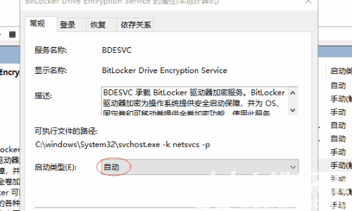 4、然后在下方找到并点击启动,最后点击确定即可,这时就可以找到bitlocker了。