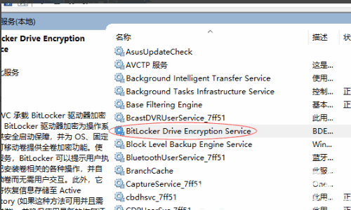 2、在右侧窗口中找到BitLockerDriveEncryptionService,双击打开;
