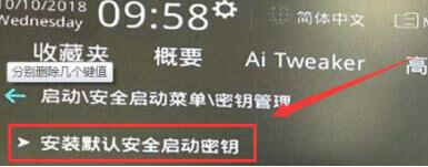 3、选择“安装默认安全启动密钥”等待安装完成就可以了