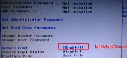 2、在下方“secure boot”中将它改为“Enabled”就可以了