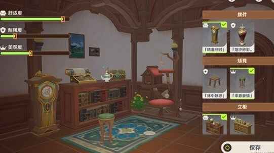 点击【布置】选择【精准守时】【率意豪情】【闲阅书阁】【辉煌青琅】【玫瑰红树】